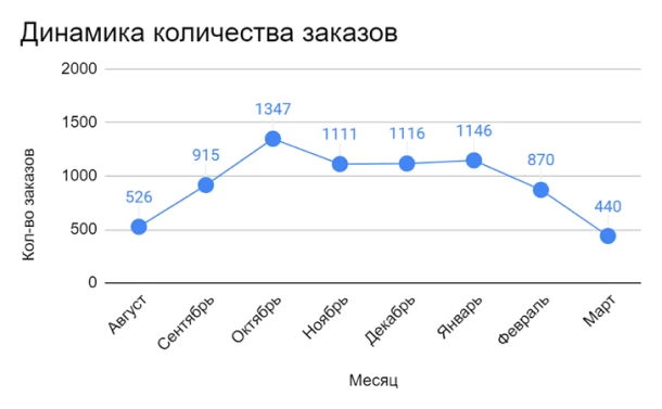 Если обратиться к внутреннему графику WB, то мы увидим повышение суммы заказов товаров за период с августа 2022 г. по январь 2023 г.