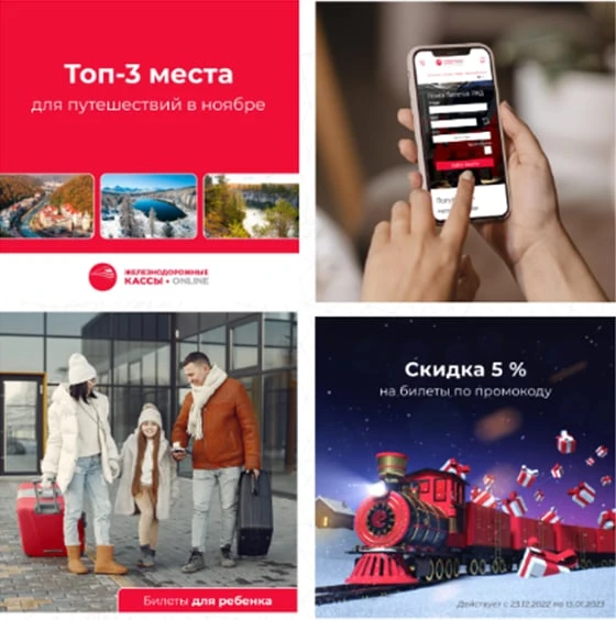 Мы использовали две основных стратегии. Прогретую аудиторию — пользователей, позитивно реагирующих на рекламные объявления, посетителей сайта, аудиторию конкурентов, направляли непосредственно на сайт бронирования билетов. Холодный трафик вели на посты продающие услуги в формате подборок популярных мест для путешествий, акции РЖД. Сам контент в ленте разбавили полезными советами, игровыми механиками и юмором.