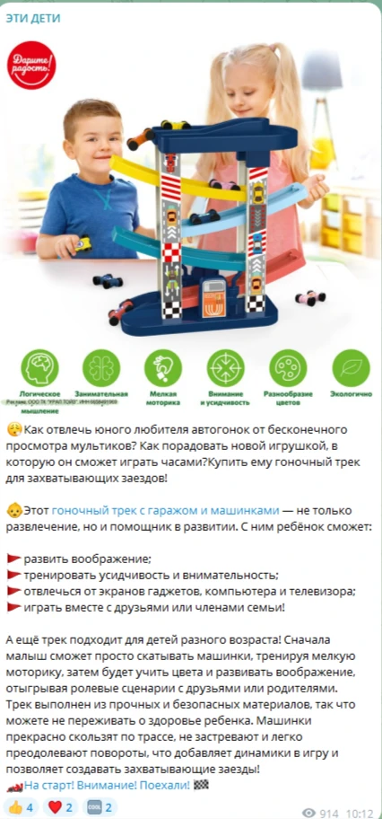 Здесь мы использовали рекламу как у лайфстайл-блогеров (молодые мамы с детьми до 3 лет), так и у экспертов (логопеды, педагоги). Рекламная кампания была направлена на рост продаж через узнаваемость бренда, а также увеличении трафика на маркетплейс.