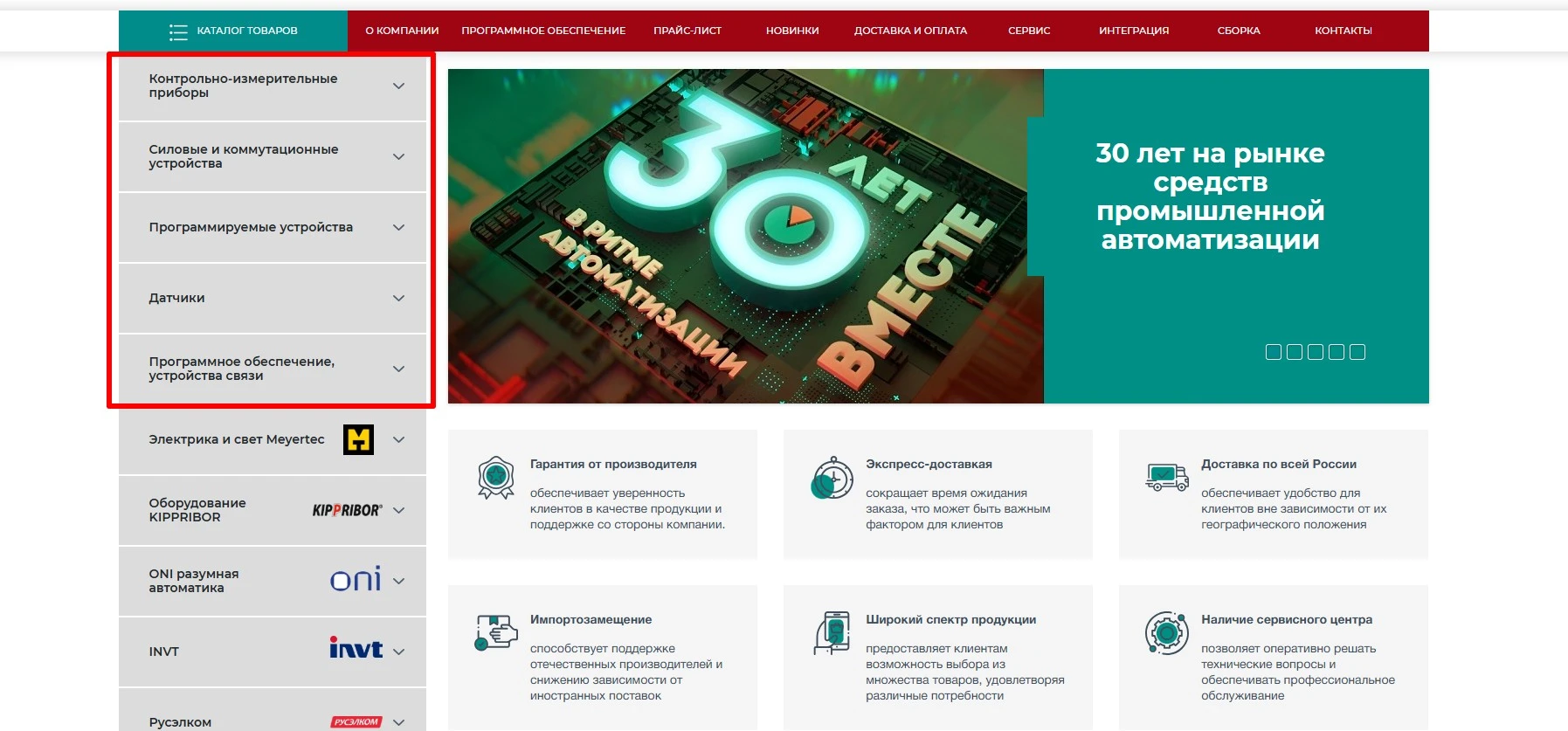 Первоначально боковое меню имело необоснованный с точки зрения логики раскрытый раздел с продукцией «Овен». Это могло ввести в заблуждение клиентов, ведь из меню не было понятно что это товары именно этой марки.