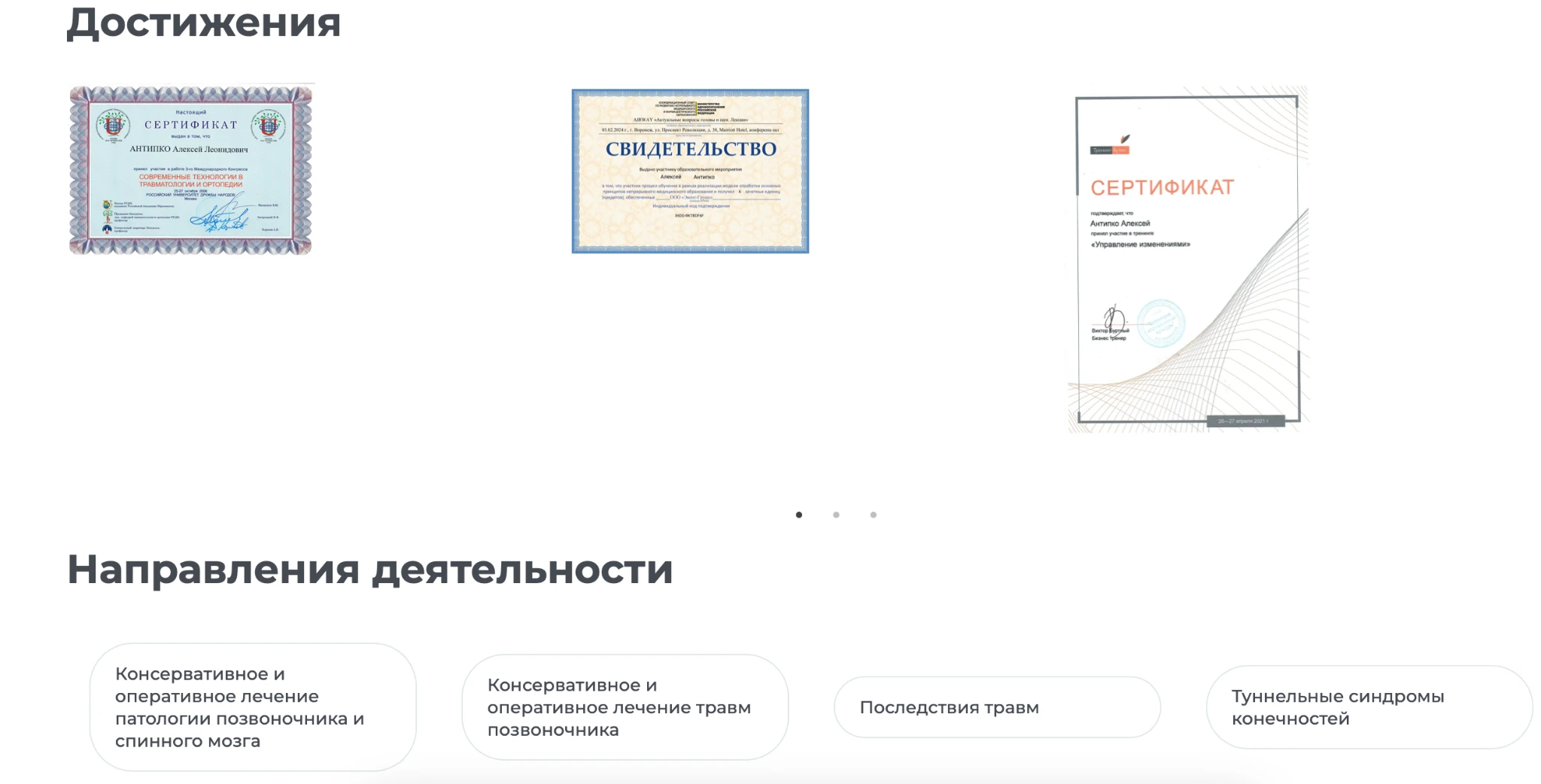 Учитывая, что в центре работают более 300 специалистов, мы начали с оптимизации самых популярных карточек врачей. Добавили фотографии, видео-визитки, сканы дипломов, рейтинги и отзывы с сайта «ПроДокторов». Это улучшило доверие пользователей и поведение на сайте, что позитивно сказалось на конверсии.
