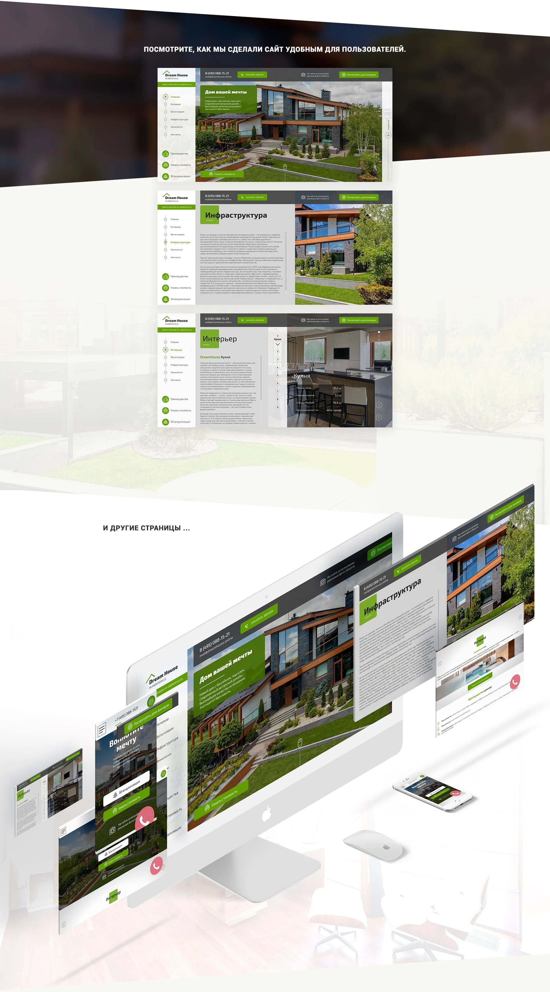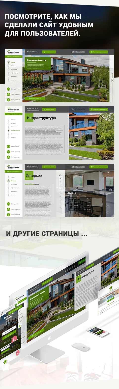 Разработан простой для понимания пользователей сайт с интерактивными блоками, которые иллюстрируют основные преимущества дома.