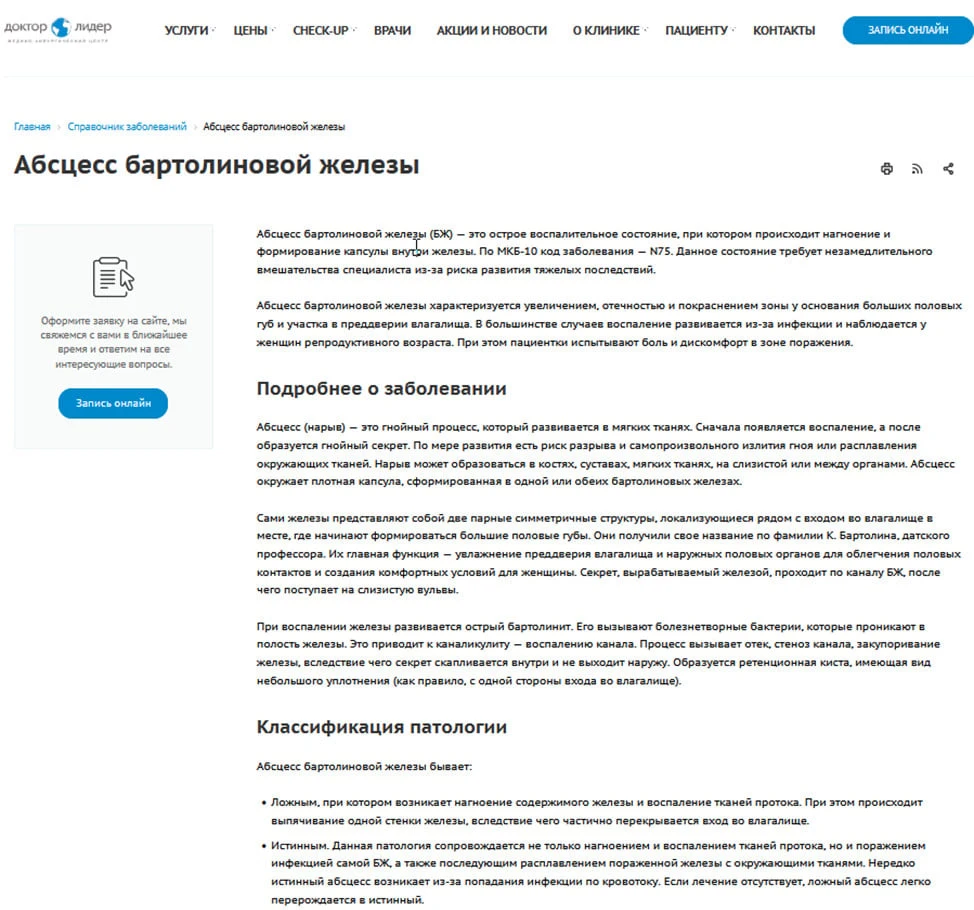 Статья №3. Читайте полный вариант текста по ссылке https://doctorlider.ru/diseases/abscess-bartolinovoj-zhelezy/