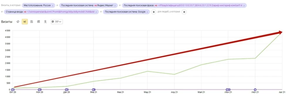 На скриншоте ниже отражена динамика роста посещаемости проекта с момента старта работ по текущий период.