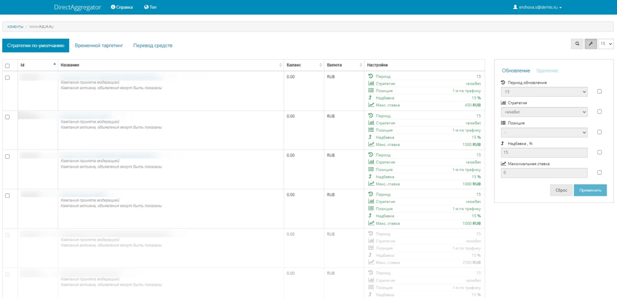 Direct Aggregator — собственное ПО агентства Demis Group, аккредитованное в Минцифры. Сервис позволяет оперативно вносить изменения в настройки показов объявлений контекстной рекламы в зависимости от изменения позиции сайта в поисковой выдаче и пожеланий клиента.