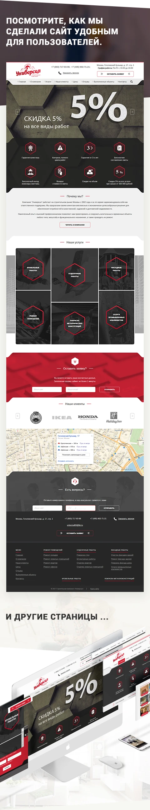 Для компании «Универсал» был разработан современный, конверсионный сайт с проработанной структурой, качественным графическим и текстовым контентом. Сайт соответствует всем SEO-требованиям для более эффективного продвижения в поисковых системах.