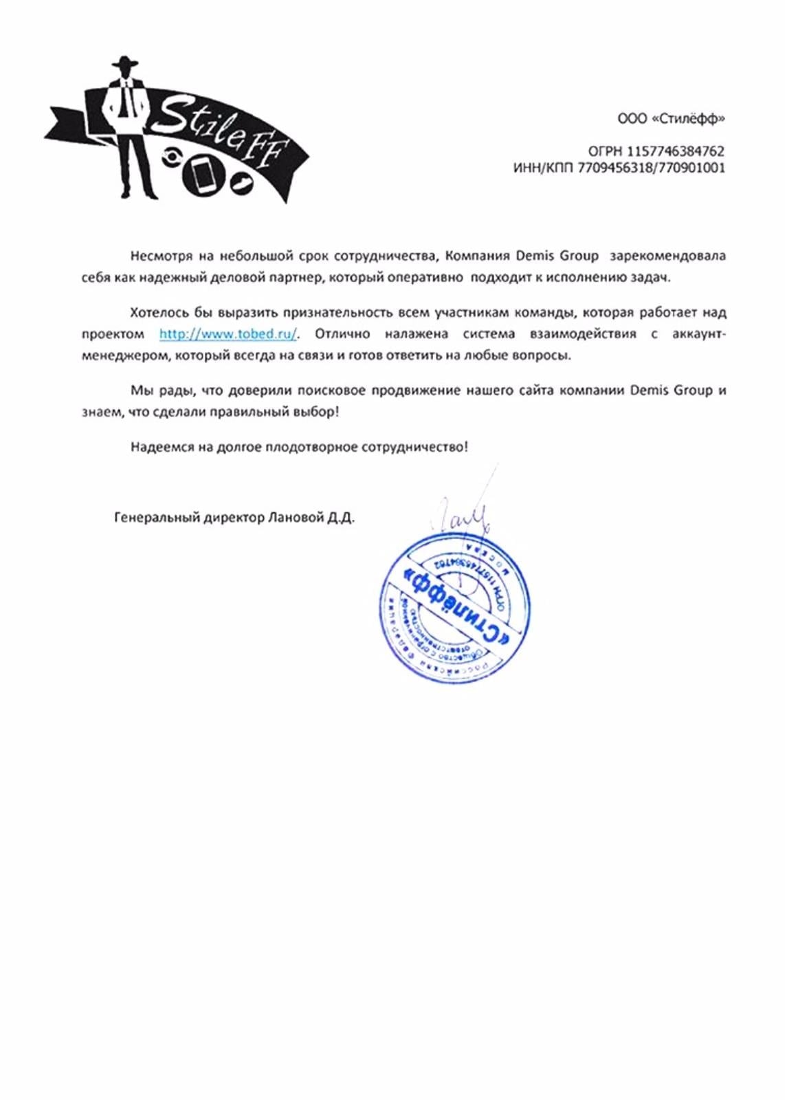 От лица компании Баннер СПБ и от себя лично выражаю всем сотрудникам компании Demis Group благодарность за профессионализм в работе, оперативность и чуткое отношение к требованиям клиента.
