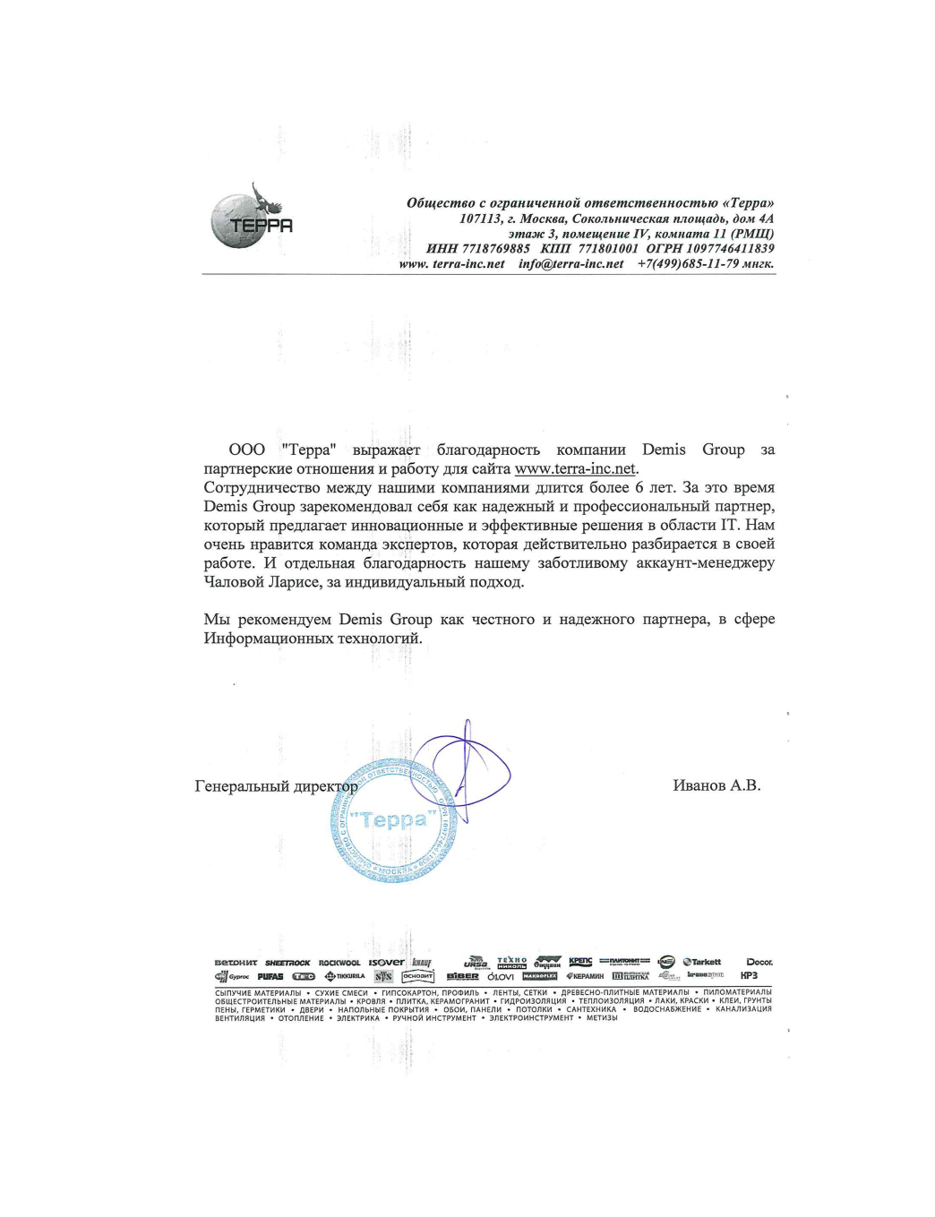 От имени лица компании ООО «ПРО БОКСИНГ» хотим поблагодарить компанию «Дэмис Групп» за выполнение поставленных задач и помощь нашему бизнесу.