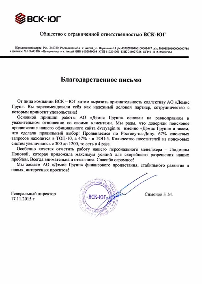 Основной принцип работы АО «Дэмис Групп» основан на равноправном и уважительном отношении со своими клиентами. Мы рады, что доверили поисковое продвижение нашего официального сайта dveryagin.ru именно «Дэмис Групп» и знаем, что сделали правильный выбор! Продвигаемся по Ростову-на-Дону. 67% ключевых запросов находится в ТОП-10, а 47% - в ТОП-5. Количество посетителей из поисковых систем увеличилось с 300 до 1200, то есть в 4 раза.