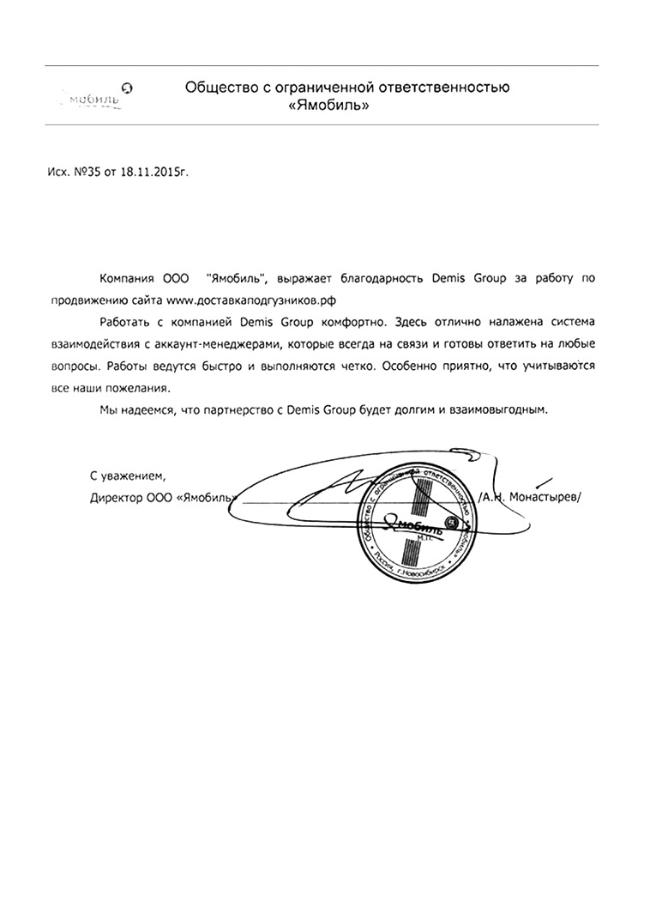 Уже год и три месяца мы сотрудничаем с компанией «Дэмис Групп» — продвигаемся и в Яндекс, и в Гугл по московскому региону. Вывод по первой поисковой системе составляет 84%, а по второй — 59%.