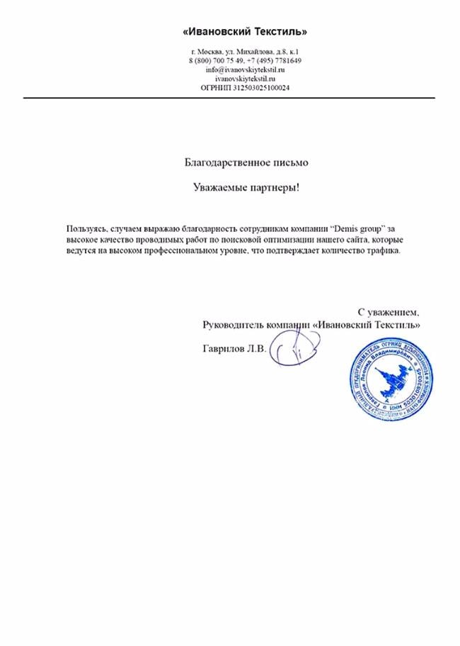 Пользуясь случаем, выражаю благодарность сотрудниками компании «Demis Group» за высокое качество проводимых работ по поисковой оптимизации нашего сайта, которые ведутся на высоком профессиональном уровне, что подтверждает количество трафика.