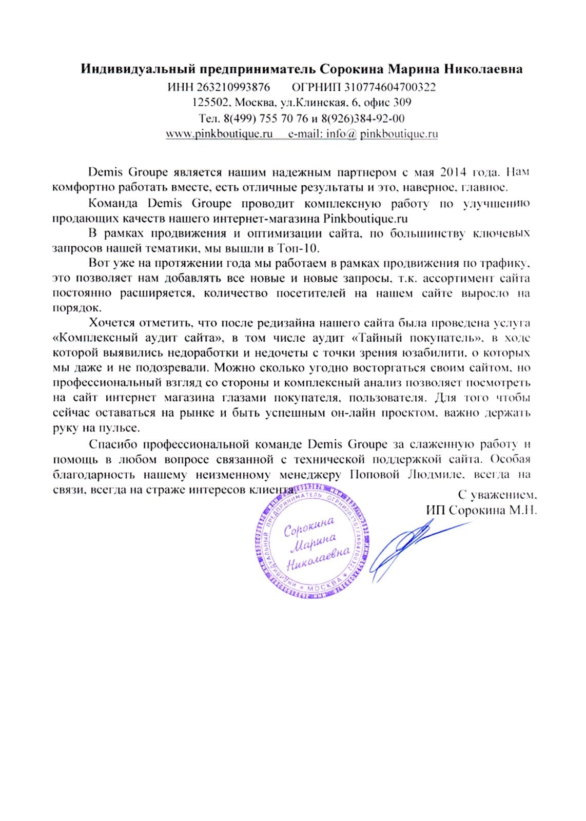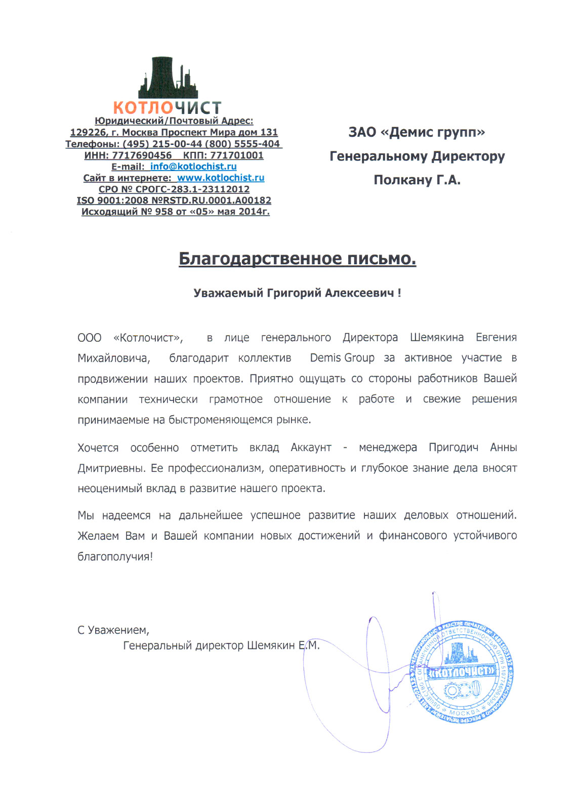 Мы благодарим коллектив Demis Group за активное участие в продвижении наших проектов. Приятно ощущать технически грамотное отношение к работе и свежие решения, принимаемые на быстроменяющемся рынке.