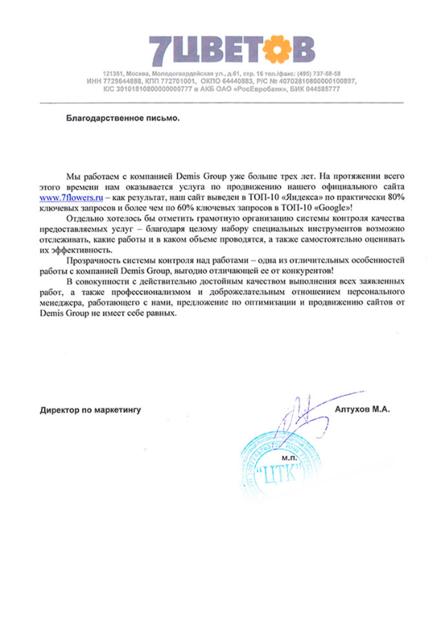 Мы надеемся на дальнейшее успешное развитие наших деловых отношений. Желаем Вашей компании новых достижений и финансового устойчивого благополучия!