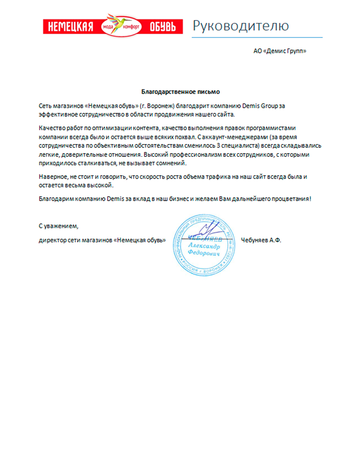 Хотелось бы выразить искреннюю признательность специалистам компании Demis Group за эффективное продвижение нашего сайта losprinters.ru! Несмотря на то, что наше сотрудничество с Demis Group длится всего 5 месяцев, наш сайт уже был выведен в ТОП результатов поисковой выдачи на 63% (по 61 запросу из 98)! Это доказывает, что выбор компании Demis Group в качестве партнера по поисковому продвижению был верным.