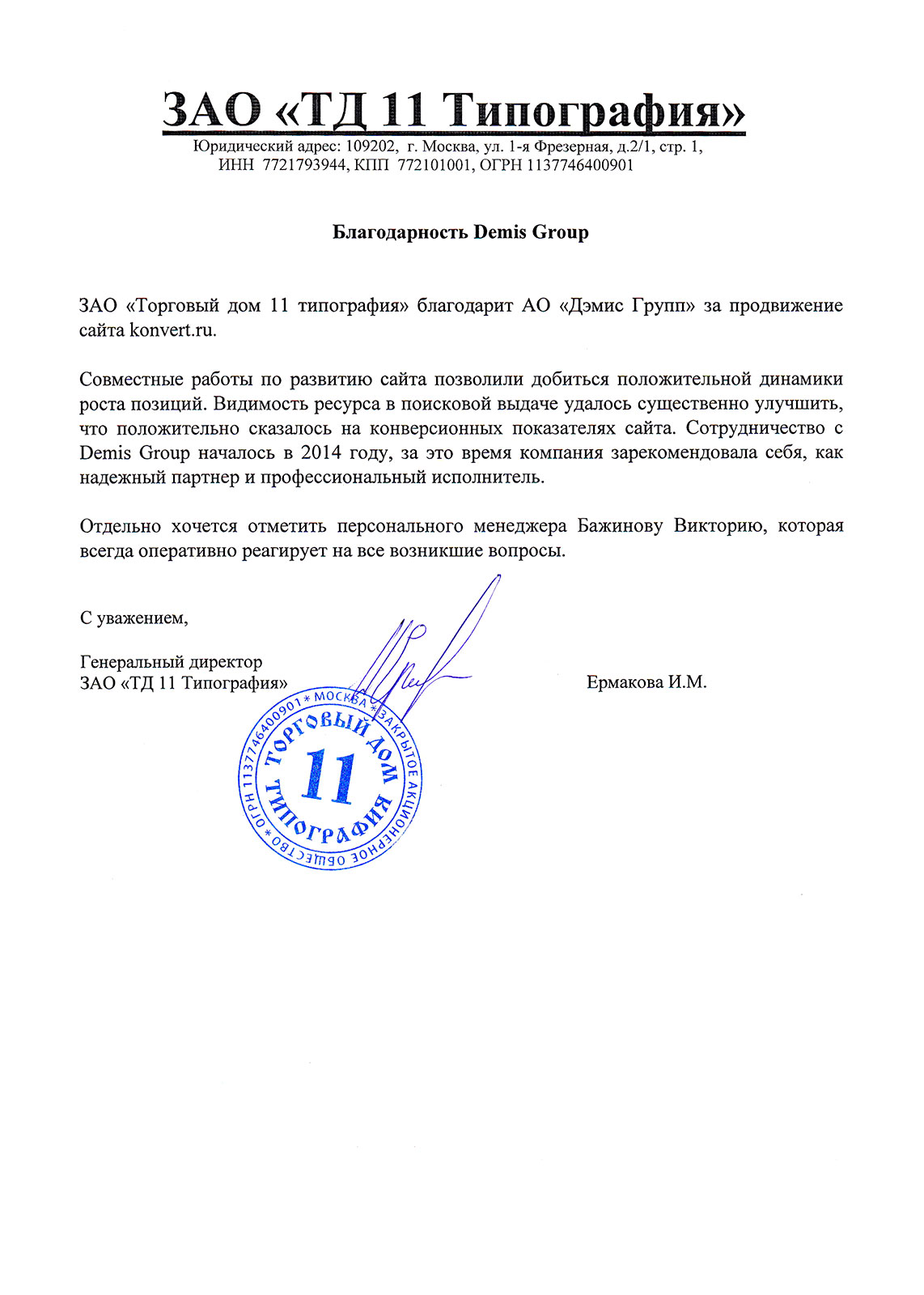 Руководтво и коллектив аптеки при НИИ им. Бурденко искренне благодарит специалистов компании «Demis Group» за профессиональный подход к поисковому продвижению официального сайта apteka-byrdenko.ru. Сотрудничаем с 2013 года.