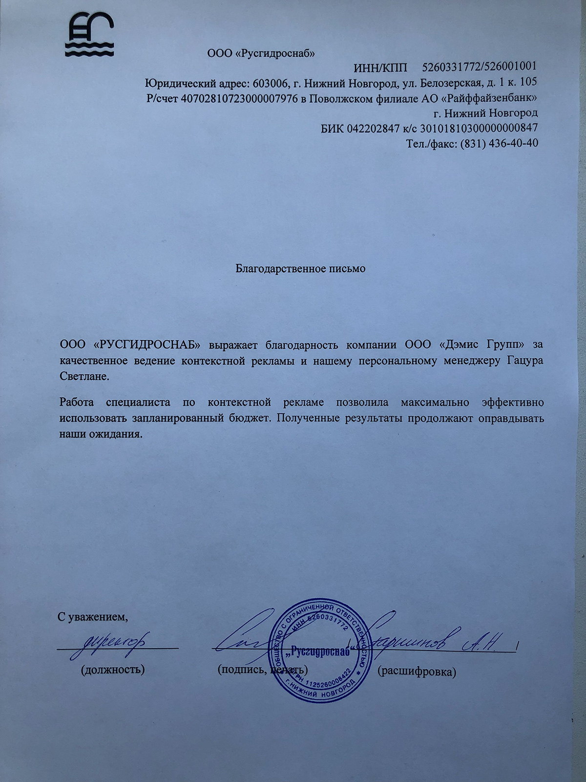 Мы воспользовались данной услугой для оценки конкурентоспособности и привлекательности нашего бизнеса с точки зрения потенциального клиента, остались очень довольны. Проделана колоссальная работа, предоставлен довольно подробный отчет, в котором даны ценные рекомендации.