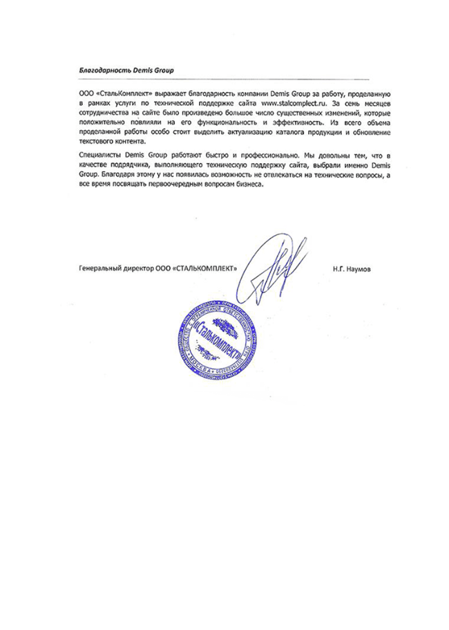 Специалисты Demis Group работают быстро и профессионально. Мы довольны тем, что в качестве подрядчика, выполняющего техническую поддержку сайта, выбрали именно Demis Group. Благодаря этому у нас появилась возможность не отвлекаться на технические вопросы, а все время посвящать первоочередным вопросам бизнеса.