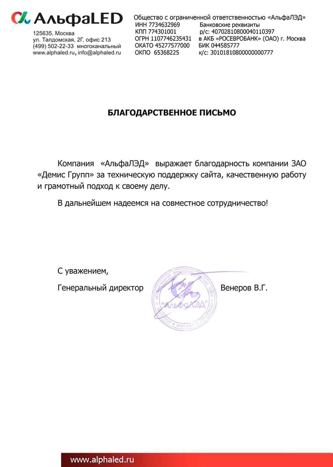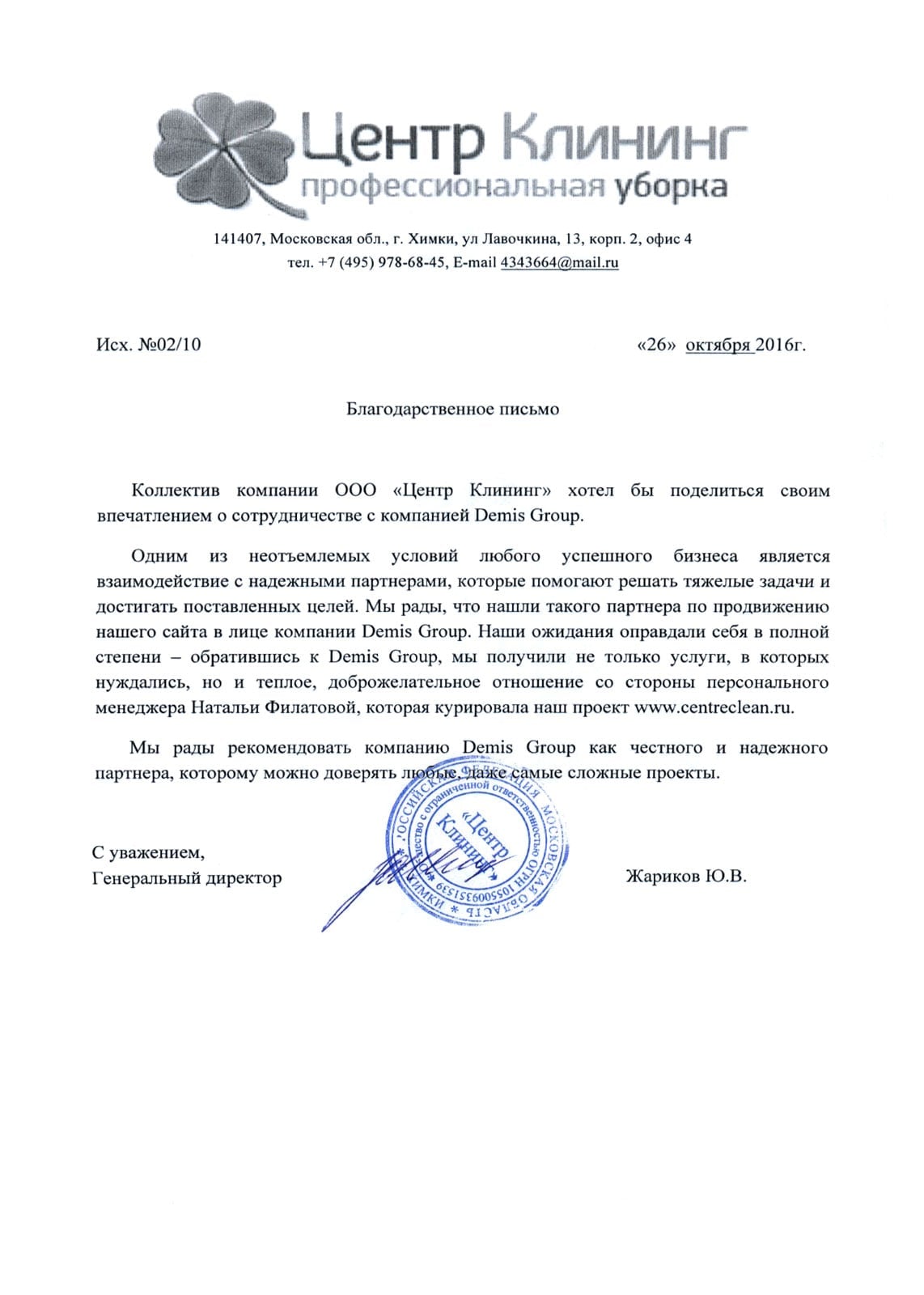 Коллектив компании ООО «Центр Клининг» хотел бы поделиться своим впечатлением о сотрудничестве с компанией Demis Group.