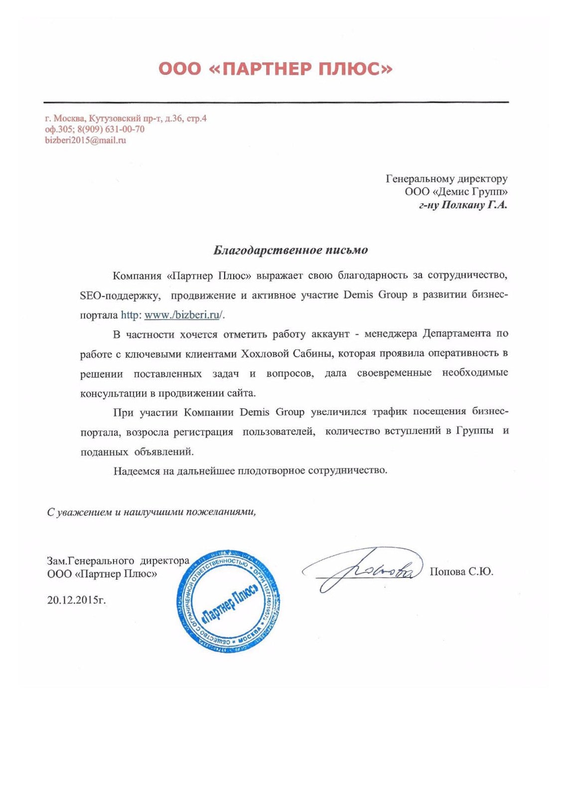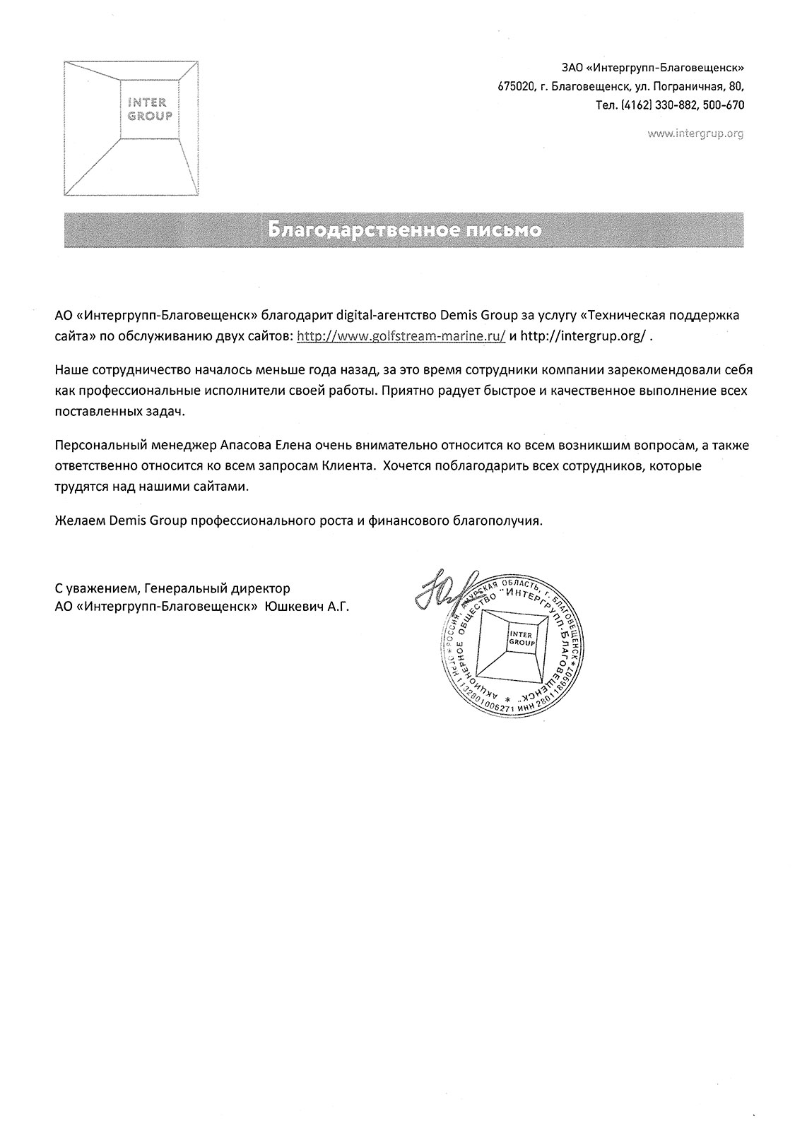 Мы рады рекомендовать компанию Demis Group как честного и надежного партнера, которому можно доверять любые, даже самые сложные проекты.