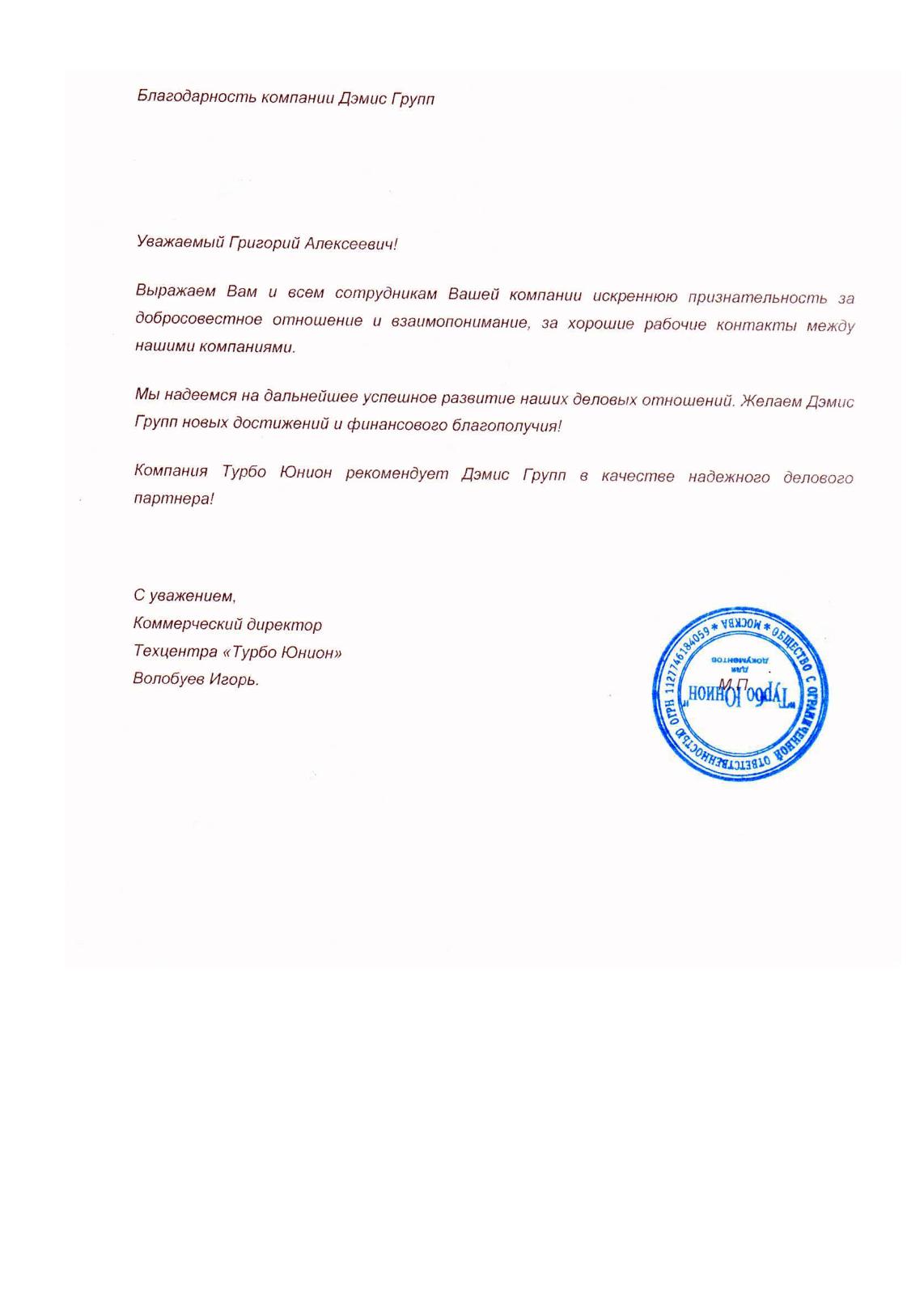 Выражаем Вам и всем сотрудникам Вашей компании искреннюю признательность за добросовестное отношение и взаимопонимание, за хорошие рабочие контакты между нашими компаниями.