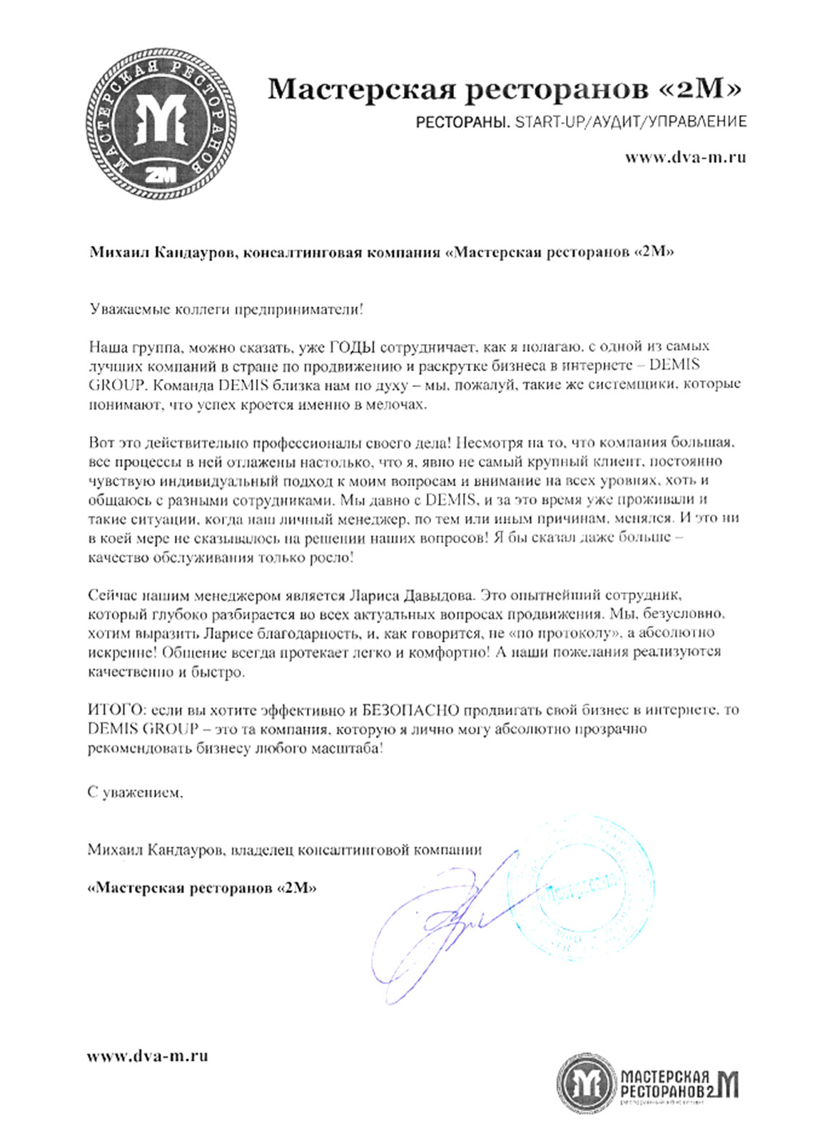 Выражаем благодарность коллективу отдела технической поддержки ЗАО «Дэмис Групп» за плодотворное сотрудничество, своевременность, оперативность, ответственность при выполнении поставленных задач.