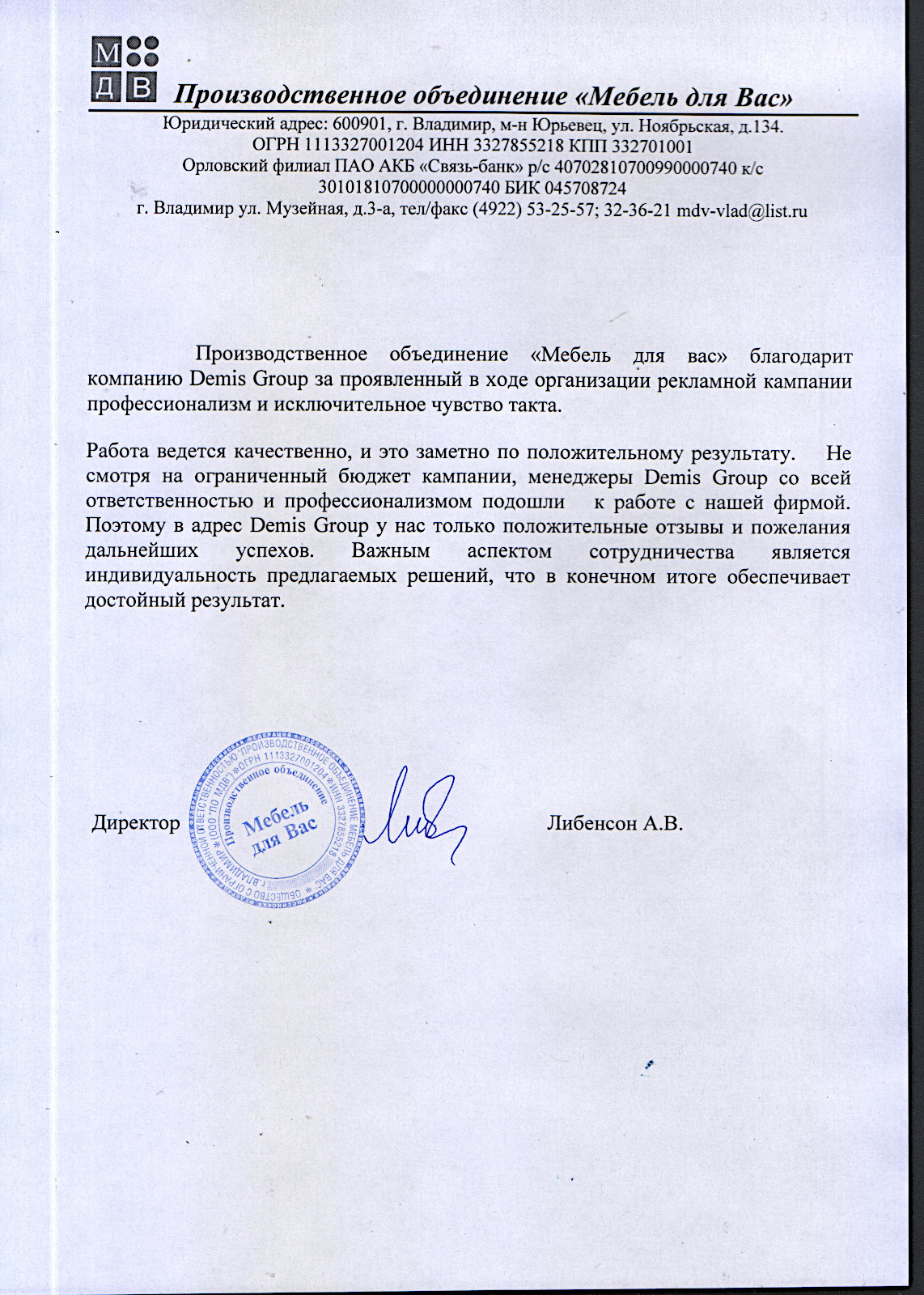 Желаем компании-партнеру дальнейших успехов и рассчитываем на плодотворное сотрудничество на благо наших организаций.