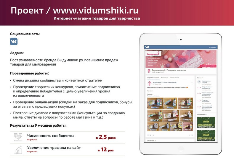 Пример успешного проекта по SMM продвижению Вконтакте:
