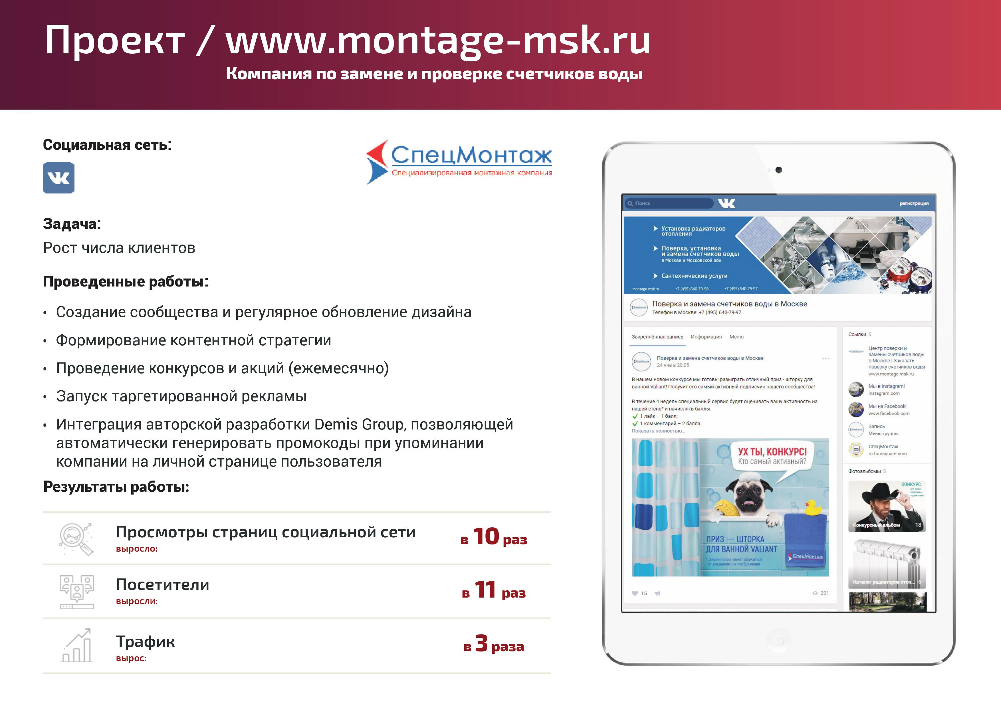 Если Вы всерьез намерены использовать площадку «ВКонтакте» для раскрутки своего бизнеса в Москве или других городах, обратитесь к SMM-специалистам Demis Group. Они знают все особенности и секреты Сети, умеют привлекать аудиторию и владеют массой профессиональных инструментов, помогающих быстро добиться результата.