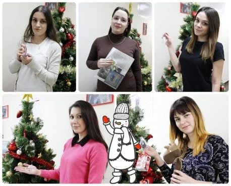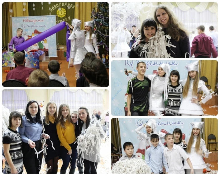 Немного приготовившись, мы собрались все в актовом зале, где без промедлений Дед Мороз и Снегурочка начали создавать самое что ни на есть новогоднее настроение.