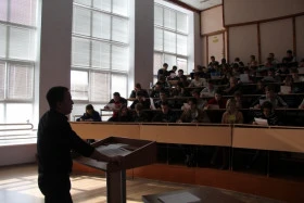 Далее директор департамента информационных технологий и его заместитель рассказали об особенностях работы программистов различных подразделений департамента и объявили задание для первого этапа конкурса. Задание получил каждый студент, присутствующий в аудитории. Также любой желающий (например, среди тех, кто не смог присутствовать) мог получить экземпляр задания у себя на кафедре.
