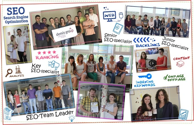 В компании Demis Group одну из ключевых функций выполняют SEO-оптимизаторы — специалисты, от работы которых напрямую зависит улучшение продающих качеств сайтов. Они отвечают за все действия, касающиеся вывода сайтов в топ поисковых систем. Спектр этих действий чрезвычайно широк: сюда входит анализ конкурентов, разработка стратегии продвижения, постановка задач соответствующим подразделениям для внесения изменений на сайты.