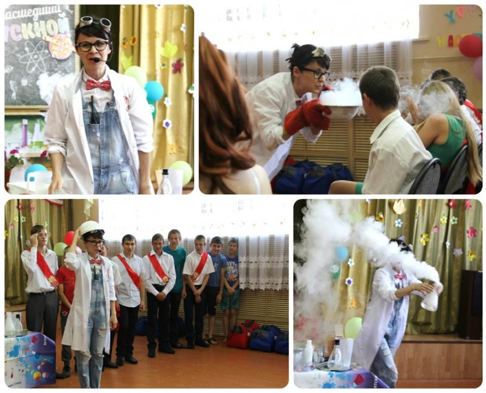 «Ребята, а кто из вас любит химию?» – спросили мы у детей перед тем, как отпустить всех на небольшую прогулку и освободить актовый зал для подготовки самого сюрприза. Улыбка медленно начала покидать лица детей, у кого-то в глазах отразилось явное недоумение, кто-то посчитал, что не расслышал вопроса, а кто-то сразу категорично заявил, что не имеет с этой наукой никаких общих дел. Мы ожидали такую реакцию, но знали, что дети просто еще не знакомы с «Сумасшедшей наукой» — ярким, интереснейшим, просто взрывным шоу, которое и стало для детей настоящим сюрпризом! По возвращении в актовый зал дети встретили профессора Колбочку, которая поразила всех своими удивительными экспериментами и весёлыми опытами для детей и неравнодушных взрослых. Она не просто заставила всех наблюдать за происходящим с широко раскрытыми глазами, но и привлекла к участию в своих сумасшедших проделках такое количество присутствующих, что так или иначе участвовали все!