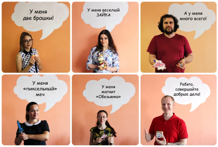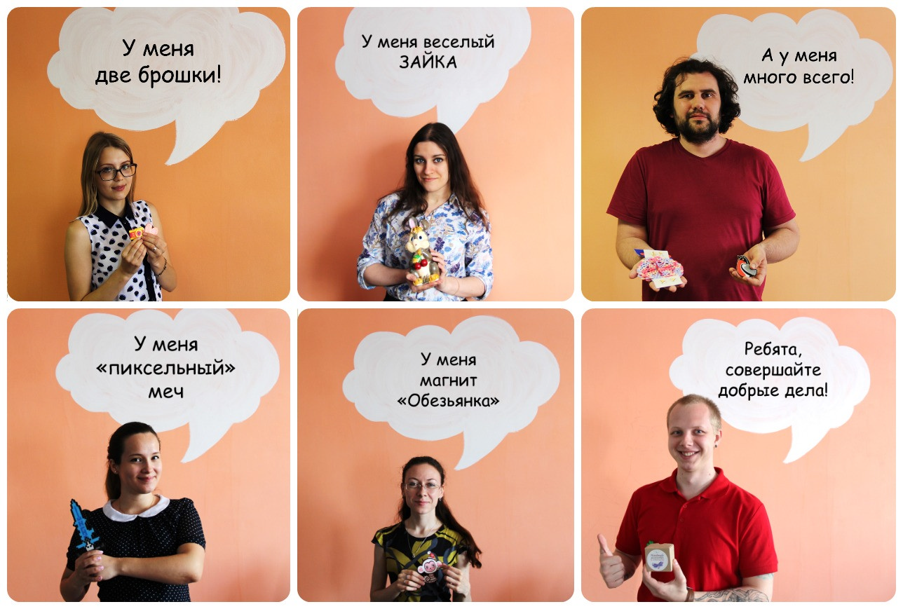 Среди удивительных лотов, представленных на ярмарке в этом году, можно было увидеть: красочные брошки от Наташи Шустовой, забавные и милые статуэтки из гипса от Оли Денисовой, «пиксельные» картинки из бисера Perler от Максима Егоричева, уже традиционную корпоративную галстук-бабочку от супруги Алексея Егорова, удивительные аксессуары из перьев от Ирины Беловой, украшения из бисера от Кати Орловой, блинчики с ягодами от шефа Евгении Луцик, купоны на прически от Жанны Нурахметовой, удивительную серию рамок для фотографий от подруги Лилии Юсуповой, мини-картины (за которые в очередной раз велась настоящая битва) от Варвары Новченковой и многие другие лоты — серьги, цветы, вязаные корзиночки, подставки под кружки, чайный домик, даже Эннеаграмма от Олега Тетушкина — все вызвало увлекательную и захватывающую борьбу за понравившиеся лоты!