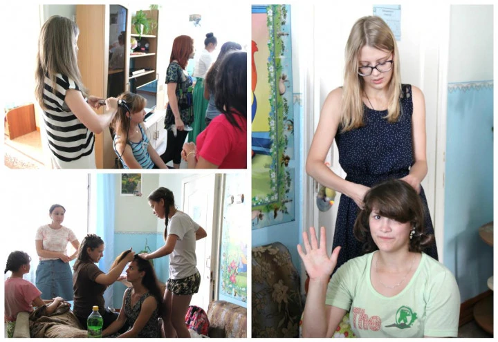 Каждый из нас (девочек) почувствовал себя настоящим стилистом: кудри, всевозможные косички, блеск заколок, теней, лака для ногтей сопровождали этот час до заветного вечера! Мы болтали, смеялись, делились различными впечатлениями с ребятами, а они рассказывали нам свои личные истории, давали советы по созданию их образа на вечер, и даже сами попробовали себя в роли настоящих стилистов, сделав великолепную прическу нашей Жене Уртанс.
