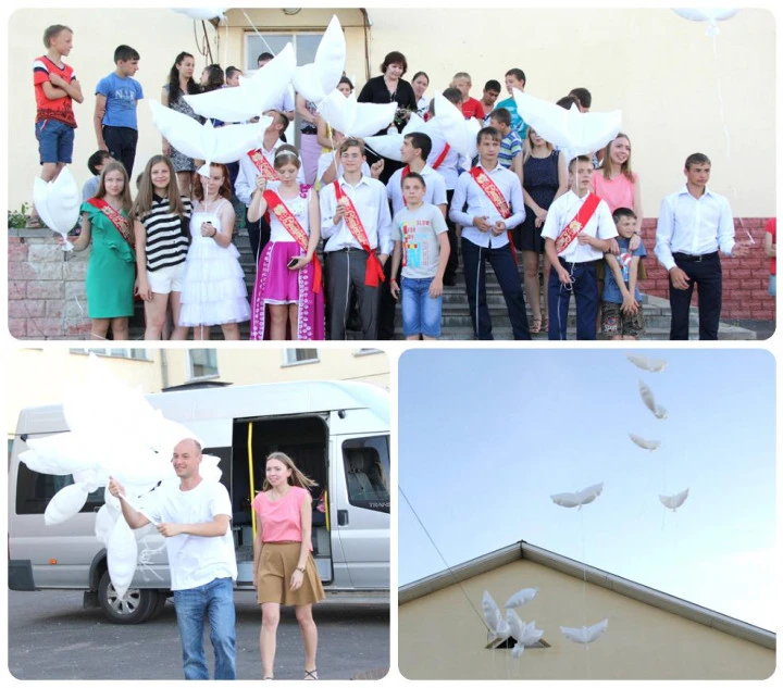 Детей переполняли эмоции от полученных аттестатов, праздничного выступления, участия в сумасшедших опытах, наслаждения от вкусного торта. И вот пришло время загадать самое заветное желание и выпустить в небо «белых голубей»!